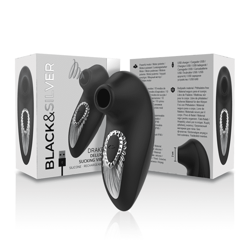 BlackSilver™ Drake es el dispositivo de bienestar sexual definitivo cuando se trata de estimulación del clítoris. Disfruta de 10 programas de succion con su potente motor. El BlackSilver™ Drake inunda tu cuerpo con estas ondas de placer, creando una sensación particularmente natural y permitiendo orgasmos nítidos como nunca antes habías experimentado. Prefieres provocar tu clítoris con la familiar tecnología BlackSilver™ Drake y completamente sin contacto?