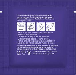 El envase unitario de los preservativos CONFORTEX FORTE incluye las instrucciones e indicaciones de uso y conservación, así como toda la información necesaria para su utilización con plena seguridad.