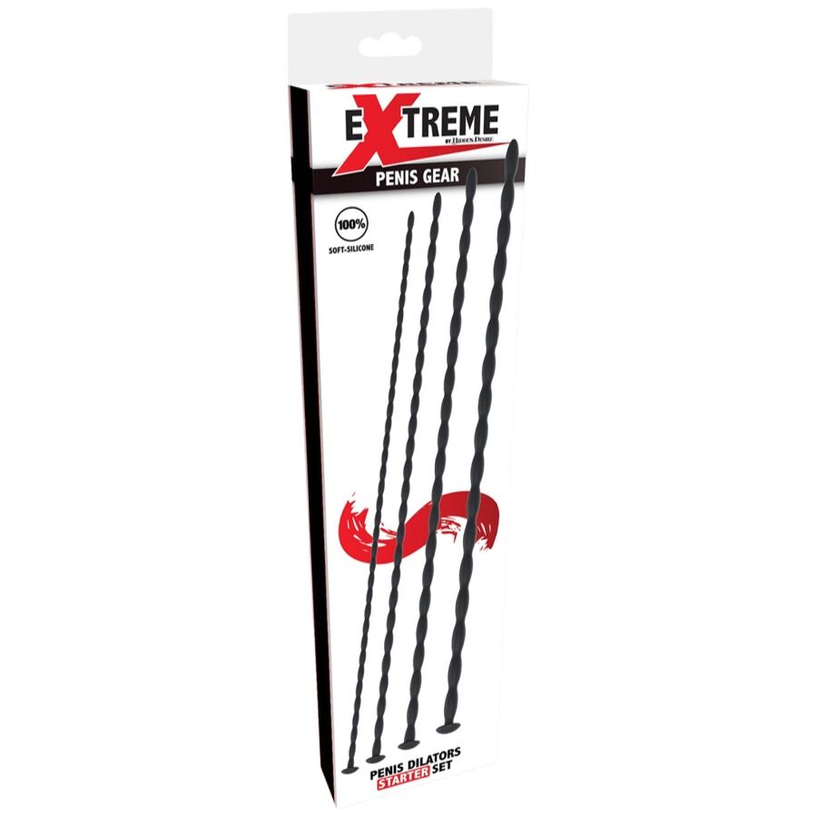 La línea EXTREME de HIDDEN DESIRE presenta este set de iniciación de dilatadores de uretra, una colección de herramientas de alta precisión diseñadas para quienes desean comenzar a explorar la estimulación interna de forma segura y progresiva. Este conjunto de cuatro piezas es ideal para principiantes, ofreciendo diámetros más finos que facilitan una adaptación gradual y placentera.